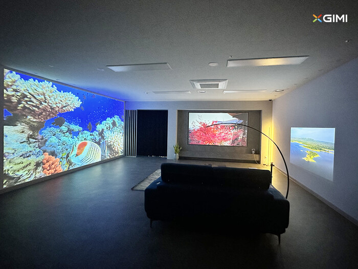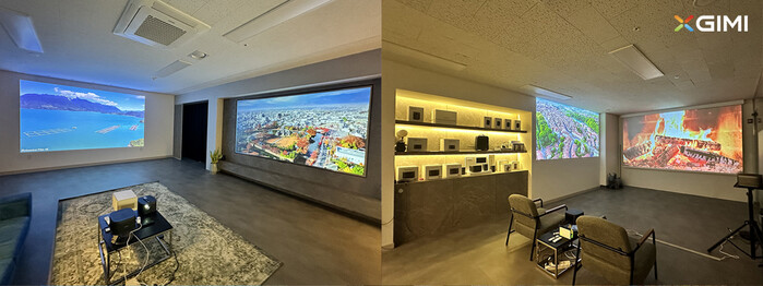 엑스지미 쇼룸은 모든 공간에서 빔프로젝터의 소리와 화질은 물론 룸의 밝기까지 조절이 가능해 실제 집과 같은 환경에서 제품을 체험할 수 있다. 특히 서로 다른 크기와 스타일로 꾸며진 2개의 방과 벽을 통해 자신의 집안 환경에 최적인 제품을 찾는 것이 가능하다.