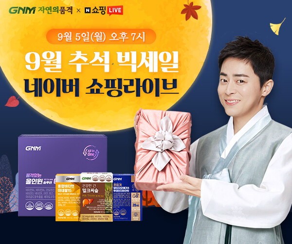 ‘GNM자연의품격’은 이달 5일 오후 7시부터 8시 30분까지 1시간 30분 동안 쇼핑라이브 방송 진행은 물론, 네이버 공식몰에서 추석 특가 행사를 진행한다고 밝혔다.