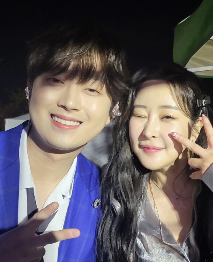 하이량은 사진과 함께 “’미스트롯2’때부터의 인연이 지금은 한 회사의 진짜 가족이 된 내 동생 별사랑. 서로 손등 뽀뽀만 주고받고 사진 찍을 정신도 없이 바이. ‘사랑의 콜센타’ 녹화 때 보고 오랜만에 만난 같은 고향 출신 이찬원. 늘 밝고 예의 바른 찬원씨. 볼 때마다 ‘같은 대구 출신이잖아요’ 한다.