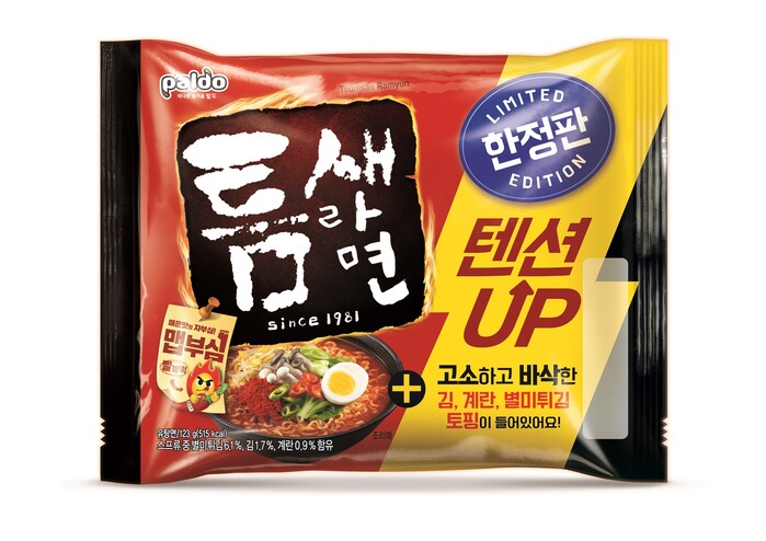팔도는 ‘틈새라면 빨계떡 한정판’을 출시하여 기존 틈새라면에 토핑스프를 추가했다고 밝혔다.