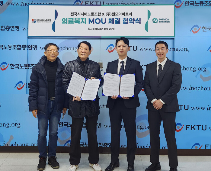 ㈜원모아파트너는 지난 23일 한국노동조합총연맹 대회의실에서 한국노동조합총연맹 전국시니어노동조합 조합원과 의료복지 업무협약(MOU)를 체결했다고 밝혔다.