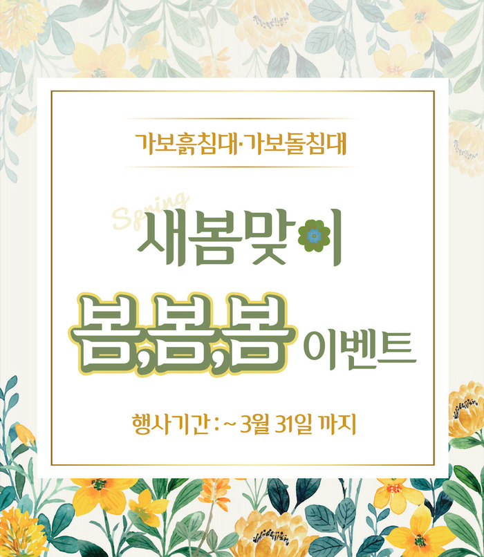 가보건강침대는 오는 31일까지 새봄맞이 ‘봄봄봄’ 이벤트를 실시한다고 밝혔다.