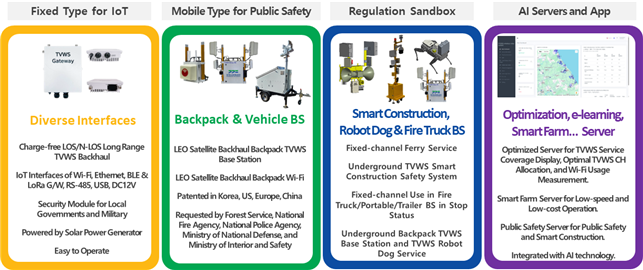 또한 AI 서버를 연계한 스마트팜·원격의료·스마트 건설·공공안전망을 플랫폼으로 구현하여, TVWS 기술을 단순 인터넷 연결을 넘어 사회 인프라 혁신으로 확장시켰다. 이러한 혁신적인 활동은 TVWS를 산간오지, 도시, 지하 건설현장, 재난 및 전쟁 지역 등의 다양한 장소에서 혁신적 연결성을 제공했다.