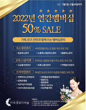 대전피부관리 전문샵 이숙경뷰티캐슬 2022년을 맞아 연간 멤버십 신규가입 고객에 대한 할인 프로모션을 시작했다고 밝혔다.