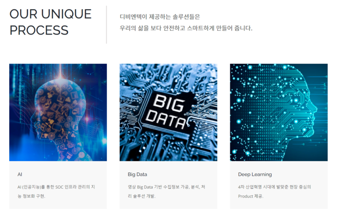 AI영상 분석 및 사고감지 솔루션인 Vision ON T, VisionON S, Vision ON C는 차별화된 알고리즘 설계와 디비엔텍의 특허기술인 자체 딥러닝 오류 분석 및 업데이트 시스템을 바탕으로 기존 솔루션 대비 우수한 탐지율과 낮은 오류, 개발사 개입이 최소화된다. 또 관제요원의 업무 효율성을 향상 시키고 조기 대응 및 2차 사고의 확산을 맞아 안전과 삶의 질 향상에도 영향을 미친다.