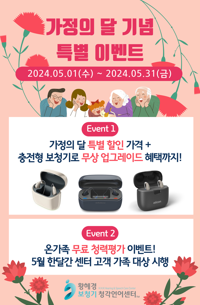 황혜경보청기 청각언어센터에서 가정의 달인 5월을 맞이하여 특별한 이벤트를 실시한다.