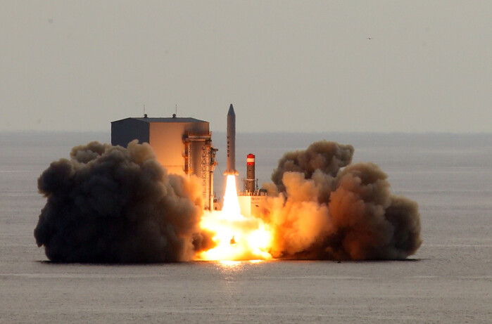 | ▲한화시스템이 2023년 12월 제주도 해상에서 민간 최초 상용 지구관측 소형 SAR 위성을 발사하고 교신에 성공했다 (사진=한화시스템) |