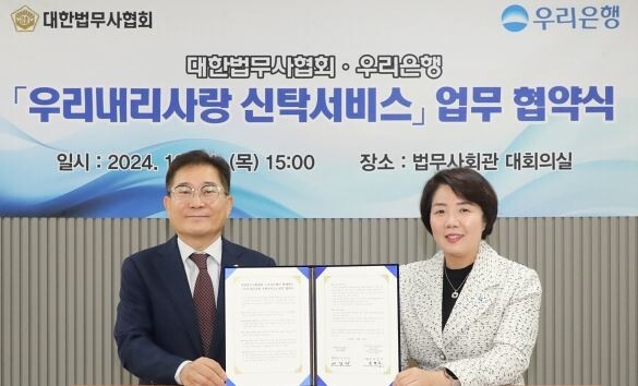 우리은행이 지난 10월 31일 대한법무사협회와 ‘우리내리사랑 신탁서비스 업무협약’을 체결했다고 1일 밝혔다.