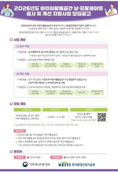 | ▲납·프탈레이트류 검사 및 개선 지원사업 안내문 (사진=기후에너지환경부 제공) |