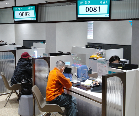 | ▲객장 안에는 중·장년층 손님들의 이용 편의성을 높이기 위해 큰 글씨와 단순화된 화면의 ‘창구 번호 표시기’가 설치돼 있다 (사진=하나은행) |