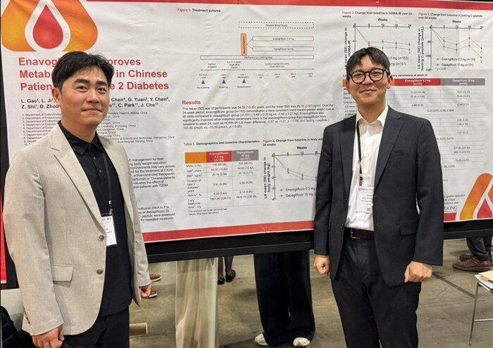 대웅제약 나재진 임상의학센터장은 “이번 연구는 엔블로정이 단순한 혈당 조절을 넘어 체중과 인슐린 대사까지 함께 개선하는 효과를 확인한 의미 있는 연구”라며 “국산 신약으로서 글로벌 학회 무대에서 연이어 성과를 인정받고 있는 만큼, 아시아를 비롯한 다양한 환자군을 대상으로 대사질환 치료 패러다임을 주도해 나가겠다”고 말했다.