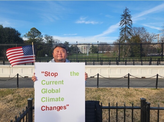 황 회장은 UN가입국 193개국 모두가 지구온난화 해결을 위한 기후협약국으로 가입되어 있는 지금 미국정부와 국회는 적극적으로 모범이 되어 지구온난화 해결을 위하여 글로벌 리더로서 앞장서 달라는 촉구 시위였다.