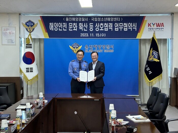 한국청소년활동진흥원의 국립청소년해양센터와 울진해양경찰서가 안전한 청소년 해양 활동을 위해 서로 손을 맞잡았다.