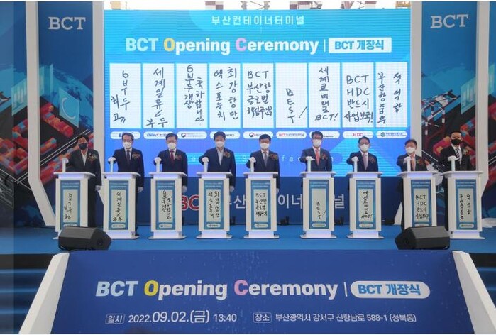 부산항 신항 컨테이너 터미널(BCT)은 2012년 개장한 5부두 이후 10년 만의 터미널 개장으로, 국내 최초의 원격조종 첨단 무인 자동 안 벽 크레인(총 8기)과 5만 톤 급 선박 3척 동시 접안, 현존 선박 중 최대 크기인 24,000TEU 급 초대형 컨테이너선의 안전한 이・접안능력을 보유하게 돼, 연간 1749만 TEU 이상의 물동량 처리와 5만 4000개 컨테이너 장치가 가능해졌다.