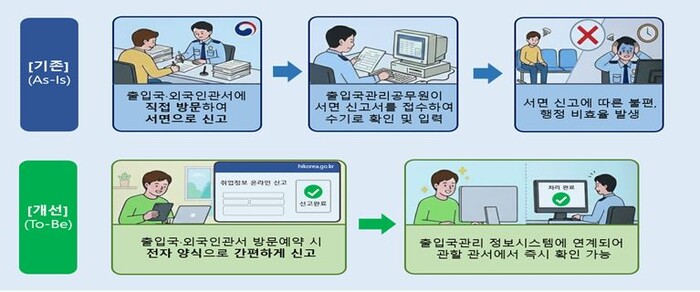 현행 온라인 신고 시스템은 접근성이 떨어지는 탓에 대부분 체류 외국인은 출입국·외국인청에 직접 방문해 서면으로 취업 정보를 신고해 왔다.
