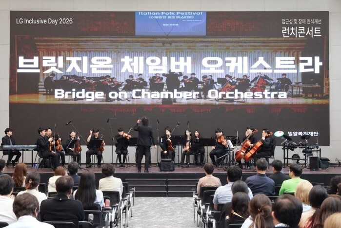 런치콘서트에서는 발달장애 연주자로 구성된 밀알복지재단 소속 ‘브릿지온 체임버 오케스트라’가 음악 공연을 펼쳐졌고, 장애에 대한 이해를 돕는 인식 개선 강연도 진행됐다.