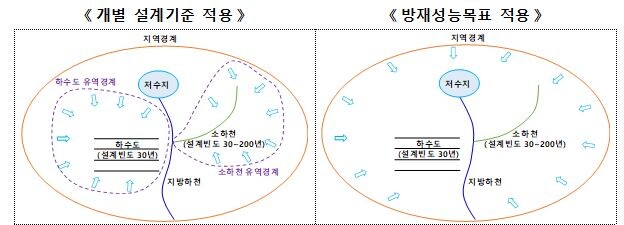 그간 지역별 방재성능목표 설정 기준은 5년마다 마련해 왔으나, 최근 방재성능목표를 초과하는 극한강우가 빈번히 발생함에 따라 이런 기후변화를 신속히 반영하기 위해 기준 마련 시기를 앞당겼다.