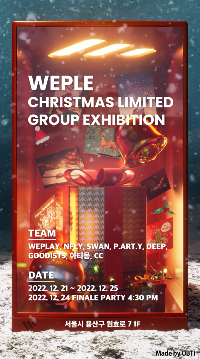 크리스마스 리미티드 전시회는 한강변에 위치한 위플 사옥에서 진행된다. 100명 이상의 작가들이 WEPLAY(구동하), NFLY(HAN), SWAN(MoryC), P.ART.Y(김미네), DEEP(하치), GOODISTS(Knockk), 아티몽(유화), CC(제이) 총 8개의 팀을 이뤄 사옥 전체를 다양한 작품으로 꾸며 볼거리를 제공할 예정이다.