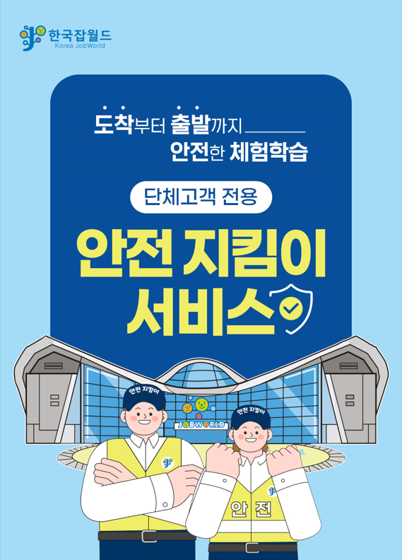 해당 서비스는 단체고객이 탄 버스가 한국잡월드에 진입하면서부터 제공된다. 사전에 버스 주차 공간을 확보해 두고, 안전 지킴이가 학생들을 맞이하며 하차를 지도한 뒤 체험관으로 이동하는 동선을 안내한다. 체험을 마치고 주차된 버스로 이동할 때에도 안전 지킴이가 함께 배웅하며 안전하게 승차할 수 있도록 밀착 케어한다. 이 외에도 응급상황 신속 대응체계를 구축하여 혹시 모를 안전사고 발생 시에도 긴밀하게 대처할 수 있도록 제반 프로세스를 정비했다.