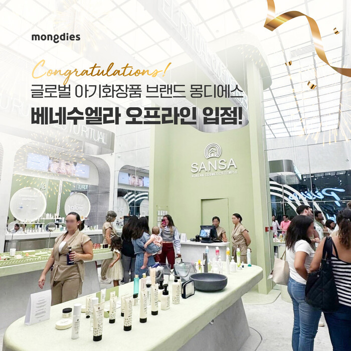 [매일안전신문=강수진 기자] 대한민국 대표 아기화장품 브랜드 몽디에스가 글로벌 시장을 확대하며 베네수엘라(C.C Cerro Verde 백화점)에 첫 오프라인 매장에 입점했다.