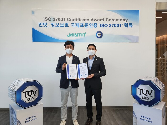 민팃은 정보보안 관리 시스템(ISMS)에 대한 국제 표준인증인 ‘ISO/IEC 27001:2013’을 획득했다고 7일 밝혔다. 이날 민팃은 글로벌 전문 인증 기관 ‘티유브이 슈드(TUV SUD)’로부터 인증서를 전달받았다.