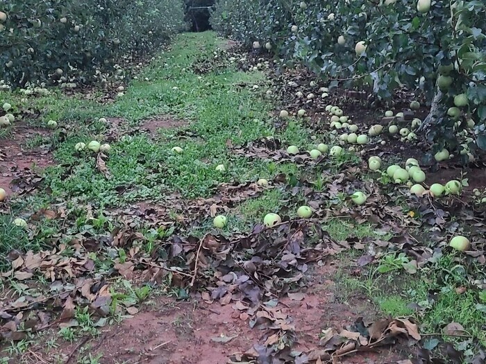 | ▲ 제11호 태풍 '힌남노' 영향으로 충남 서산시 팔봉면 과수농가에서 수확을 앞둔 사과들이 떨어져 나뒹굴고 있다. 2022.9.6 (사진=서산시/ 연합뉴스 제공) |