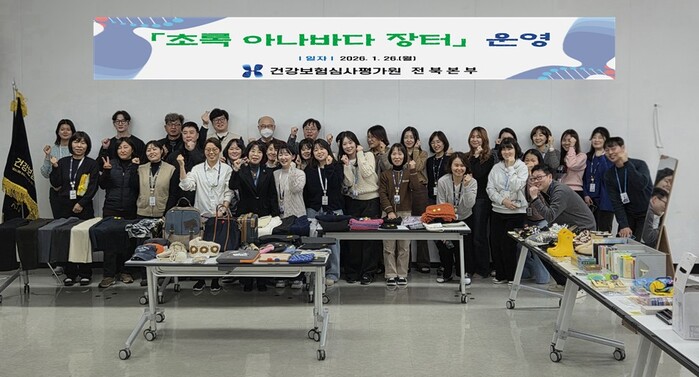 건강보험심사평가원 전북본부가 26일, 전북본부 3층 대회의실에서 자원순환과 지역 나눔 실천을 위한 ‘초록 아나바다 장터’를 개최했다고 27일 밝혔다.