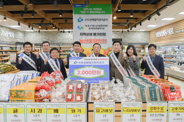 수도권매립지관리공사가 지역 농산물 소비 촉진과 매립지 영향권 주민의 생활비 부담 완화를 위해 12월 10일부터 인천 검단 농협 하나로마트에서 ‘지역농산물 상생마케팅 할인전’을 진행한다고 11일 밝혔다.