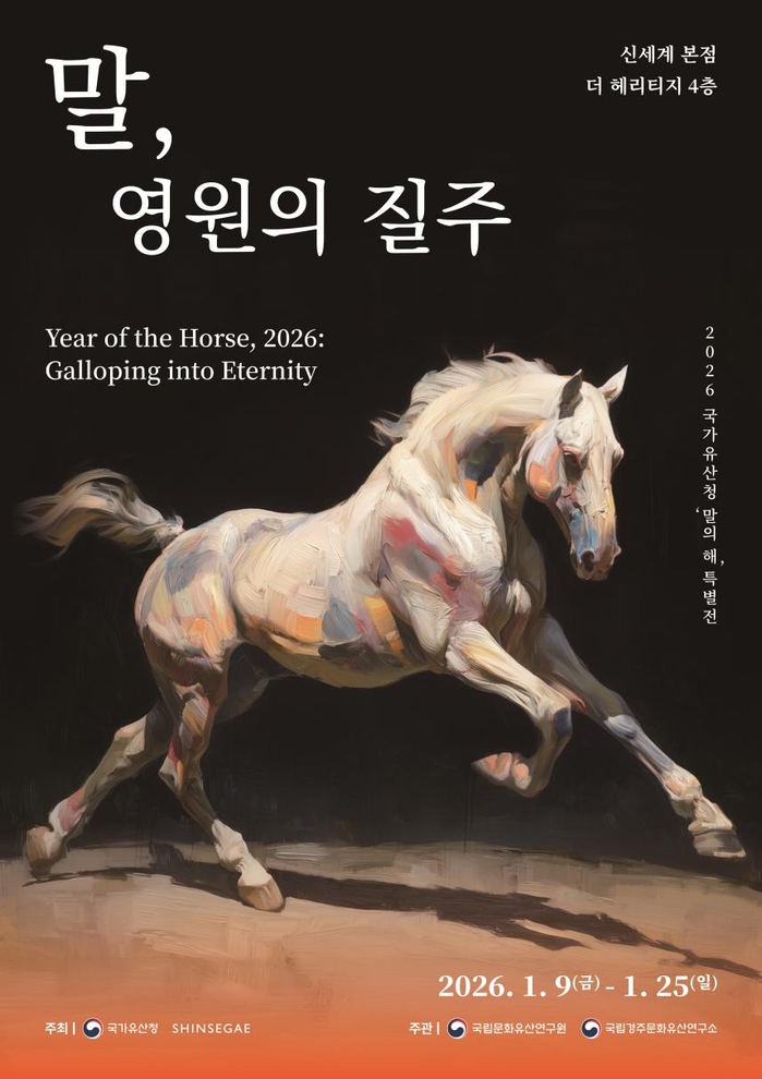 [매일안전신문=김진섭 기자] 국가유산청이 ㈜신세계와 함께 1월 9일부터 1월 25일까지 신세계백화점 본점 더 헤리티지에서 말의 해를 기념해 신라 말 모양 토우, 가야 말 갑옷 등 말과 관련한 국가유산을 집중 조명한 「말, 영원의 질주」 전시를 개최한다.