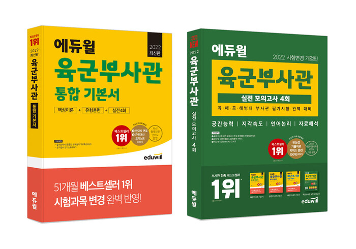 또한, ‘2022 시험변경 개정판 에듀윌 육군부사관 실전 모의고사 4회’ 교재도 남녀부사관 상위권을 차지한 것으로 전해졌다.