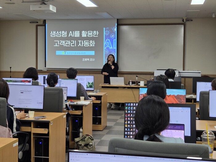 | ▲생성형 AI를 활용한 고객관리 자동화 수업 현장사진 (사진=한국농수산식품유통공사 제공) |