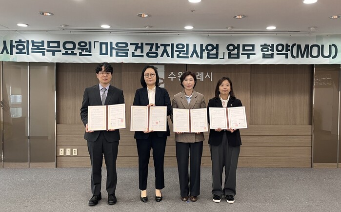 한국보건복지인재원 경인교육센터가 27일 수원시 장안구청에서 경기남부도박문제예방치유센터, 경기도자살예방센터, 수원시행복정신건강복지센터 등 3개 기관과 함께 ‘사회복무요원 마음건강지원사업’추진을 위한 MOU을 체결했다고 28일 밝혔다.
