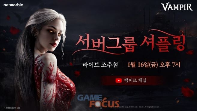 넷마블은 16일 오후 7시에 ‘뱀피르’에서 라이브 방송을 진행하며, 권이슬 아나운서가 출연해 서버 그룹 셔플링을 진행한다고 밝혔다.
