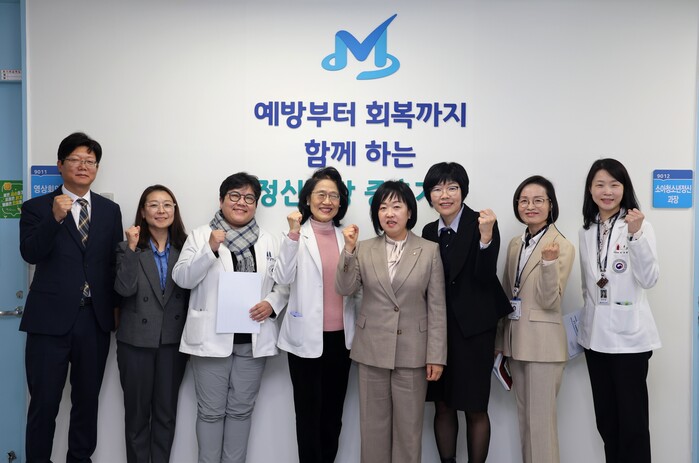 | ▲홍소영 병무청장(오른쪽 네 번째)이 24일 서울 광진구 국립정신건강센터를 방문해 병역의무자의 정신건강 지원강화를 위한 협력방안을 논의한 후 기념촬영을 하고 있다. (사진=병무청 제공) |
