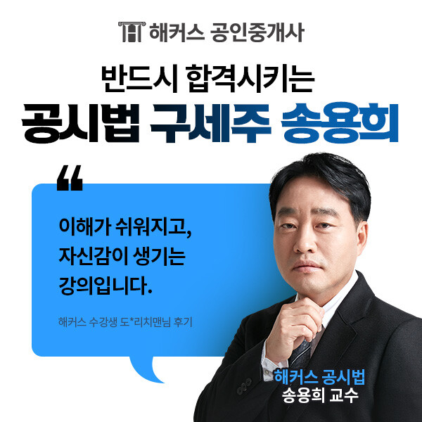 2022년 공인중개사 시험을 준비하는 수험생들을 위해 해커스가 2차 시험 과목인 공시법 송용희 교수의 입문특강을 무료로 배포하는 이벤트를 실시한다고 밝혔다.
