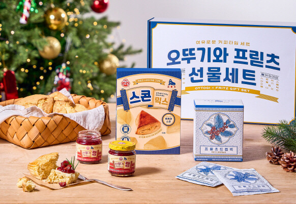 오뚜기는 디저트를 즐기는 고객을 위해 커피 원두와 베이커리로 유명한 맛집 브랜드 ‘Fritz'와 협업, '스콘믹스'와 '산딸기쨈'으로 구성된 '홈베이킹 세트'를 출시했다.