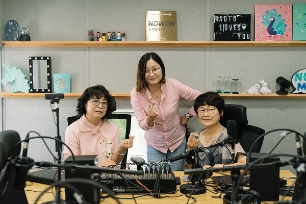 | ▲ 노원FM 소식지 낭독 프로그램 구성원. 좌측부터 황명히, 이태경, 우귀옥 활동가 (서울마을미디어지원센터 제공) |