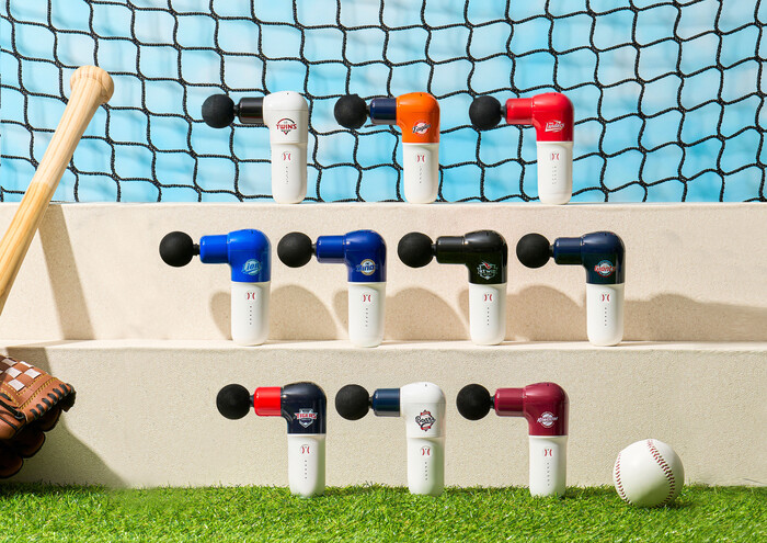 출시되는 제품은 휴대용 마사지기 ‘미니건’과 종아리 마사지기 등 두 가지다. 미니건은 소형·경량 설계에 BLDC 모터를 적용했으며 구단별 로고와 상징 색상을 반영했다. 조작 버튼에는 야구공을 연상시키는 디자인 요소를 적용했다.