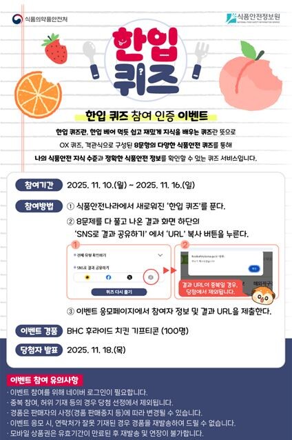 | ▲「한입 퀴즈」참여 이벤트 안내 (사진=식품안전정보원 제공) |
