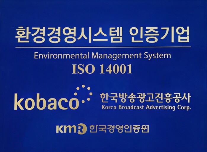 [매일안전신문=김진섭 기자] 한국방송광고진흥공사가 최근 한국경영인증원(KMR)으로부터 환경경영시스템 국제표준인 ‘ISO 14001’ 인증을 획득했다.