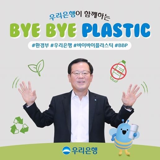 우리은행 조병규 은행장은 환경부가 주관하는 ‘바이바이 플라스틱 챌린지’에 동참했다고 22일 밝혔다.
