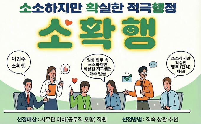 [매일안전신문=김진섭 기자] 재정경제부가 일상적인 업무 과정에서의 작은 아이디어와 적극적 업무태도를 발굴하여 새로운 조직문화로 확산시키기 위해 「소소하지만 확실한 적극행정」 제도를 운영한다.