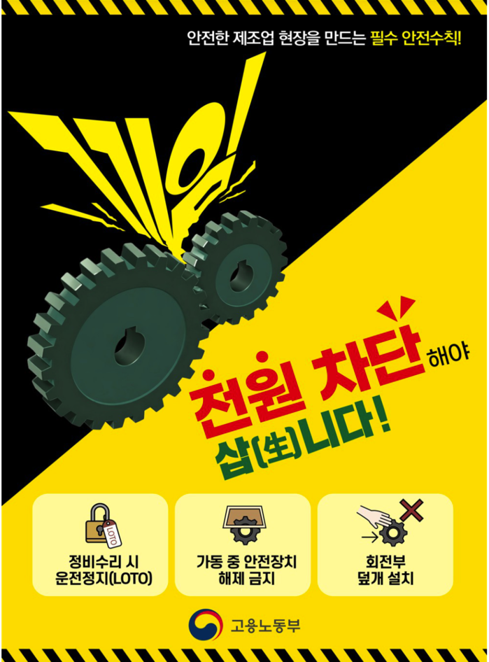 | ▲ 고용노동부가 제조업 끼임사고 예방을 위해 배포한 안전수칙 안내 이미지.(고용노동부 제공) |