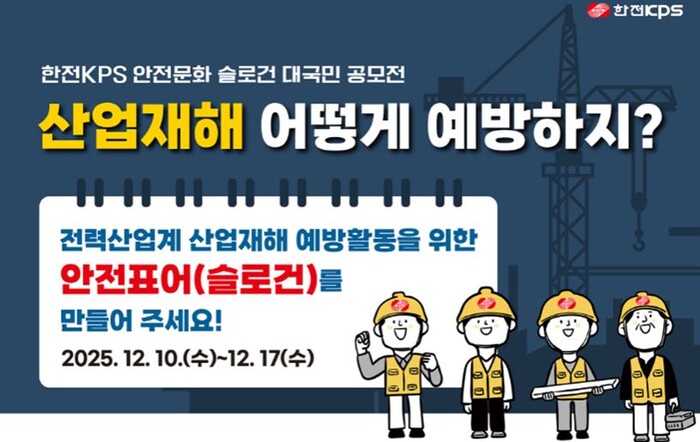 한전KPS가 오는 12월 17일까지 ‘안전문화 슬로건 대국민 공모전’을 시행한다고 10일 밝혔다.