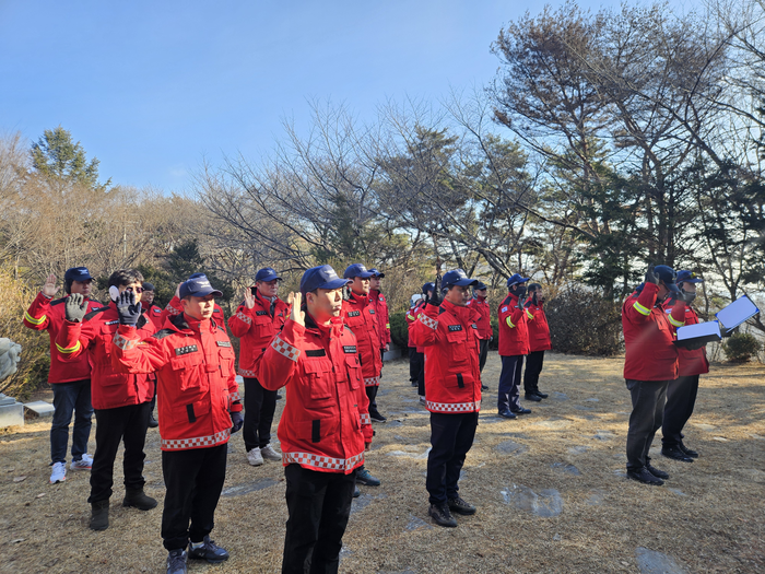 [매일안전신문=김진섭 기자] 산림청 청양산림항공관리소가 2026년 병오년 새해 충청남도 청양군 칠갑산 충혼탑에서 올해 무사고 안전비행을 다짐하는 안전결의 대회를 실시했다.
