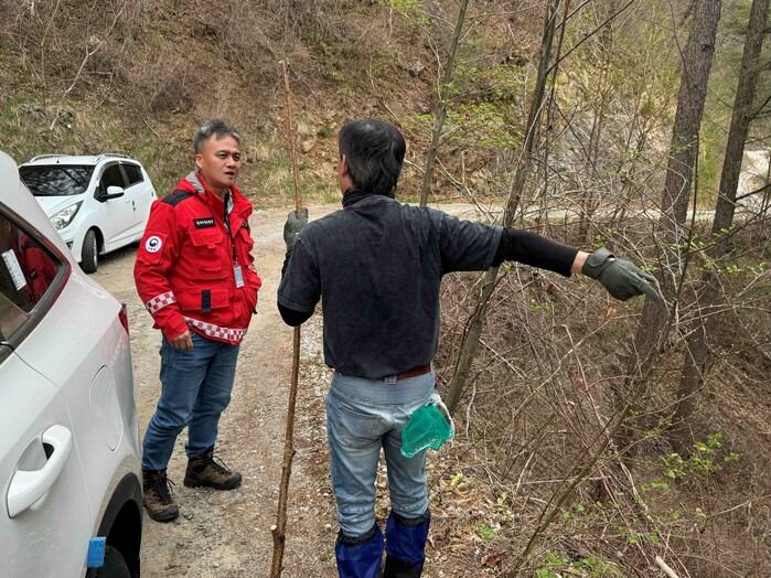 | ▲ 산림청 관계자가 봄철 산나물 불법 채취 단속을 하고 있다(사진: 산림청 제공) |