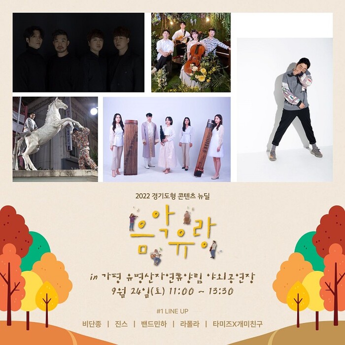 “2022 음악유랑”은 경기도가 주최하고 경기콘텐츠진흥원과 경기문화재단이 협약을 맺어 경기도 내 뮤지션들의 공연을 지원하는 사업으로, 유명산자연휴양림 내 장소를 마련해 지역주민과 휴양림 관람객들을 대상으로 문화공연을 진행한다.