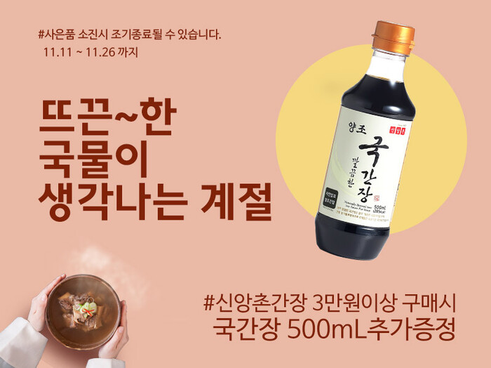 신앙촌이 다가온 겨울철을 맞아 11월 간장 관련하여 할인·증정 프로모션을 진행한다.