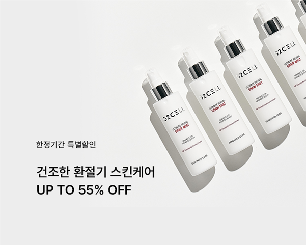 피부 기초 체력 관리에 중점을 둔 더마 코스메틱 브랜드 지투셀(G2CELL)이 건조한 환절기를 대비해 최대 55% 할인 프로모션을 진행한다.