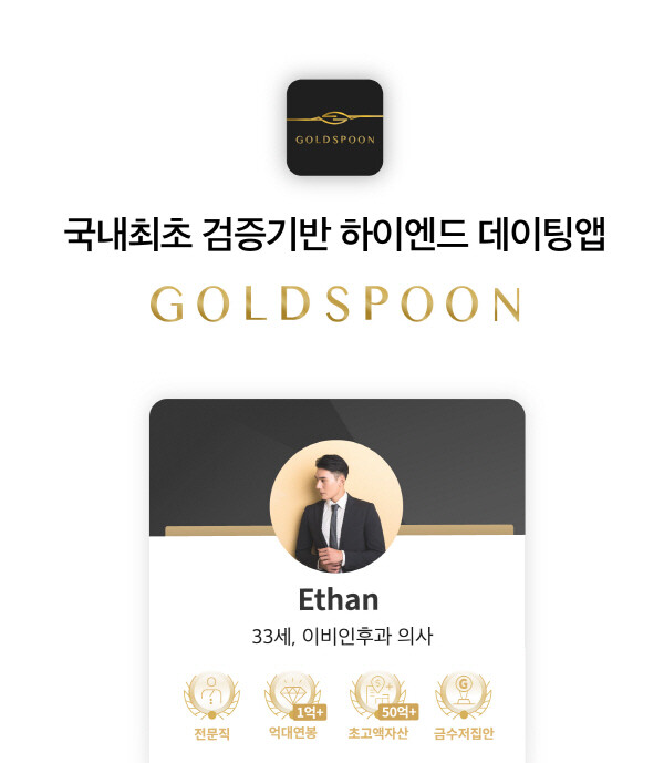 한편, 골드스푼은 ㈜트리플콤마에서 전개하는 하이엔드 콘셉트의 데이팅앱으로 지난 2018년 4월 첫 선을 보였다.